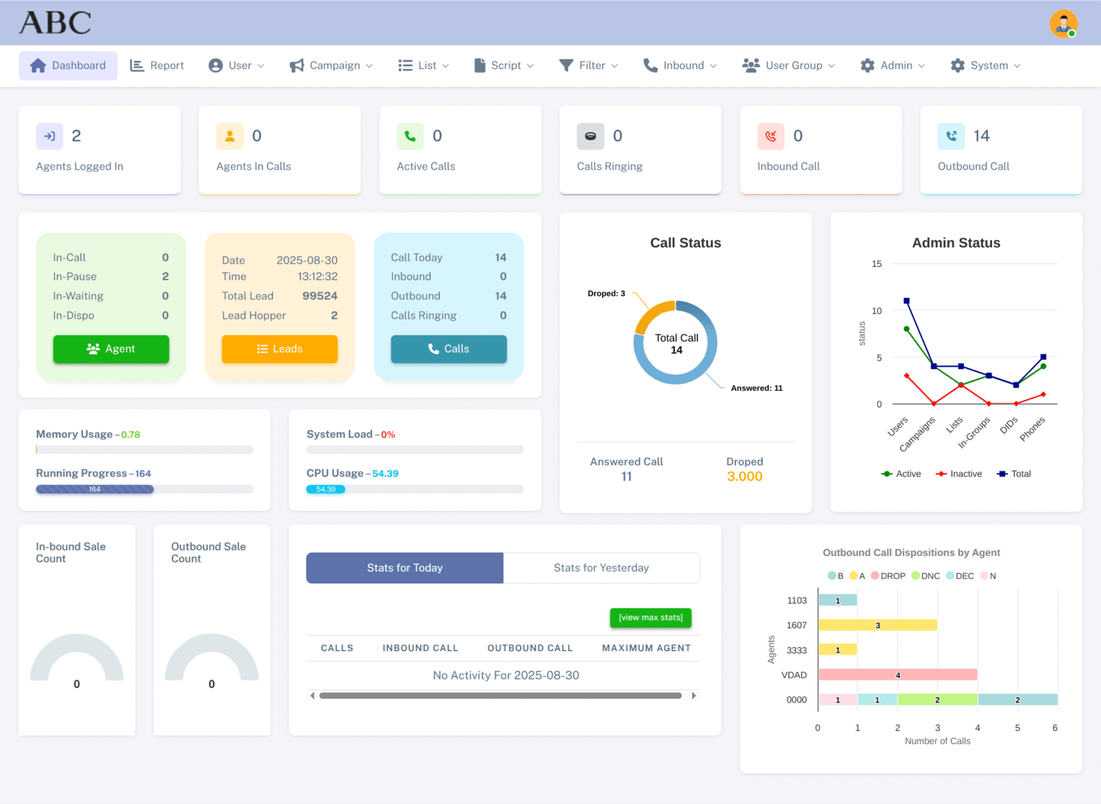 An intuitive dashboard that centralizes all key metrics. The dashboard lets users instantly see campaign results, agent activity, and a snapshot of call summaries. It’s a simple design that provides useful, clear insights.
